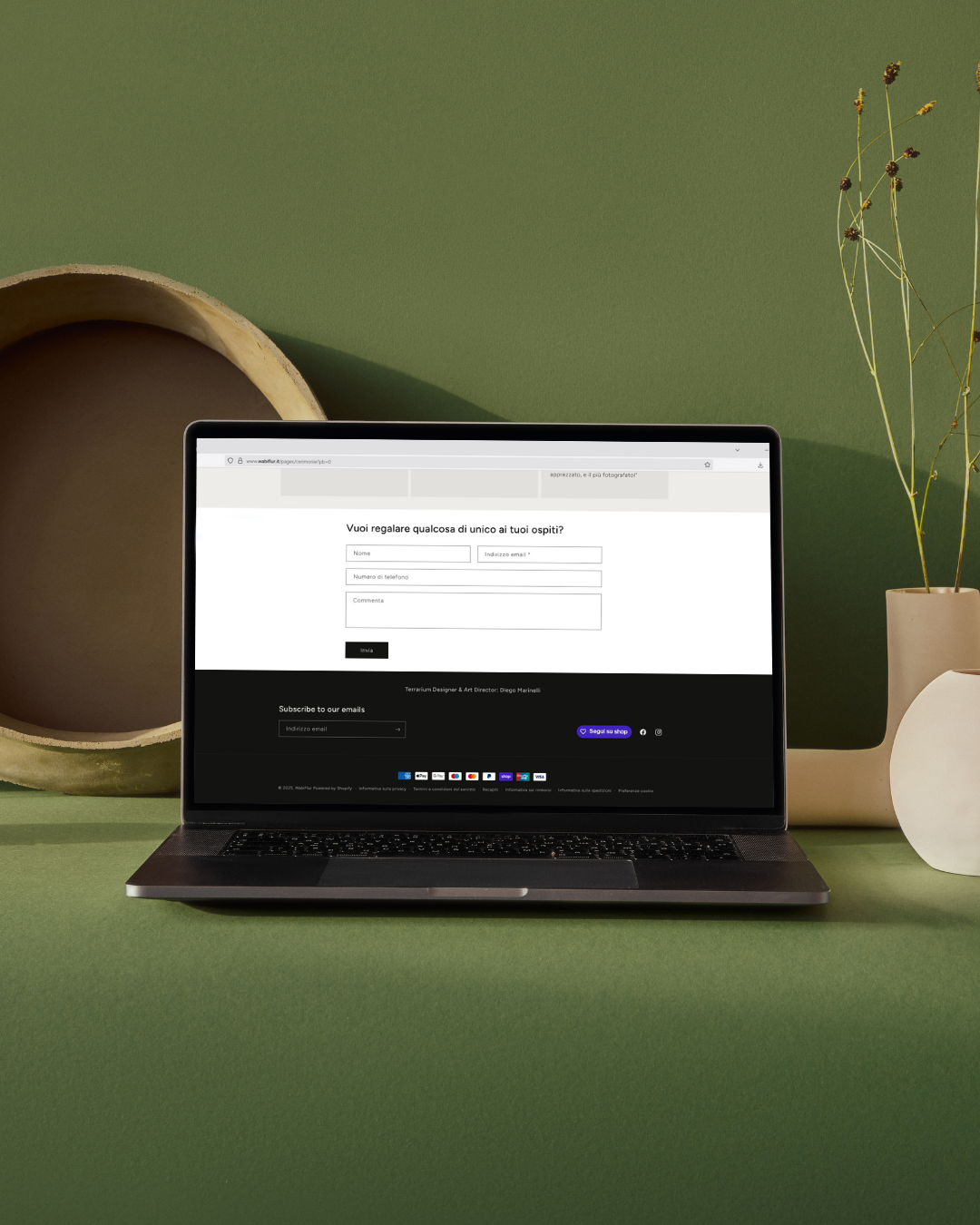 Che sia classico, minimal, rustico o botanico, WabiFlur® si adatta a ogni stile. Possiamo personalizzarlo con: